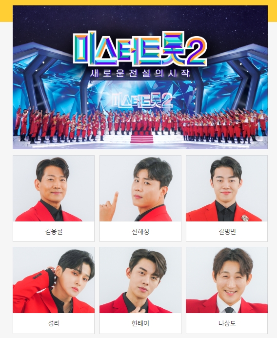 트로트의 명가인 티비조선에서 야심차게 준비한 대국민 오디션 프로그램 입니다. 미스터트롯2는 온라인 투표로 다음 라운드 진출자를 선발 합니다. 매일 목요일밤 오후 10시에 방영하는 미스터트롯2 결승전 실시간 문자투표 번호를 안내 합니다. 2023년 3월 16일 목요일 결승전 당일날 방송을 통해 참가자 문자번호가 공개됩니다. 공식발표가 나오면 가장 빠르게 소식을 전하겠습니다.